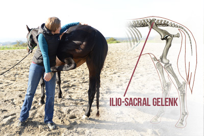 Durch die Mobilisation der Hintergliedmasse in Abduktion, ist es möglich, das ISG (ilio-sakral-Gelenk) zu testen und zu behandeln.