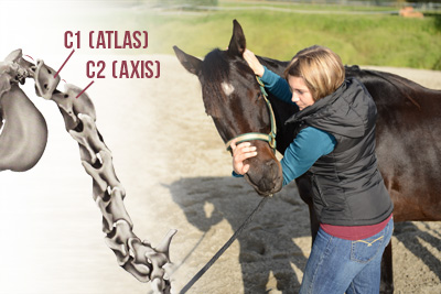 Durch gezielte Mobilisation oder Manipulation eines Gelenks, können "Blockaden" gelöst werden. Hier im Beispiel: Rotation li von C1/C2